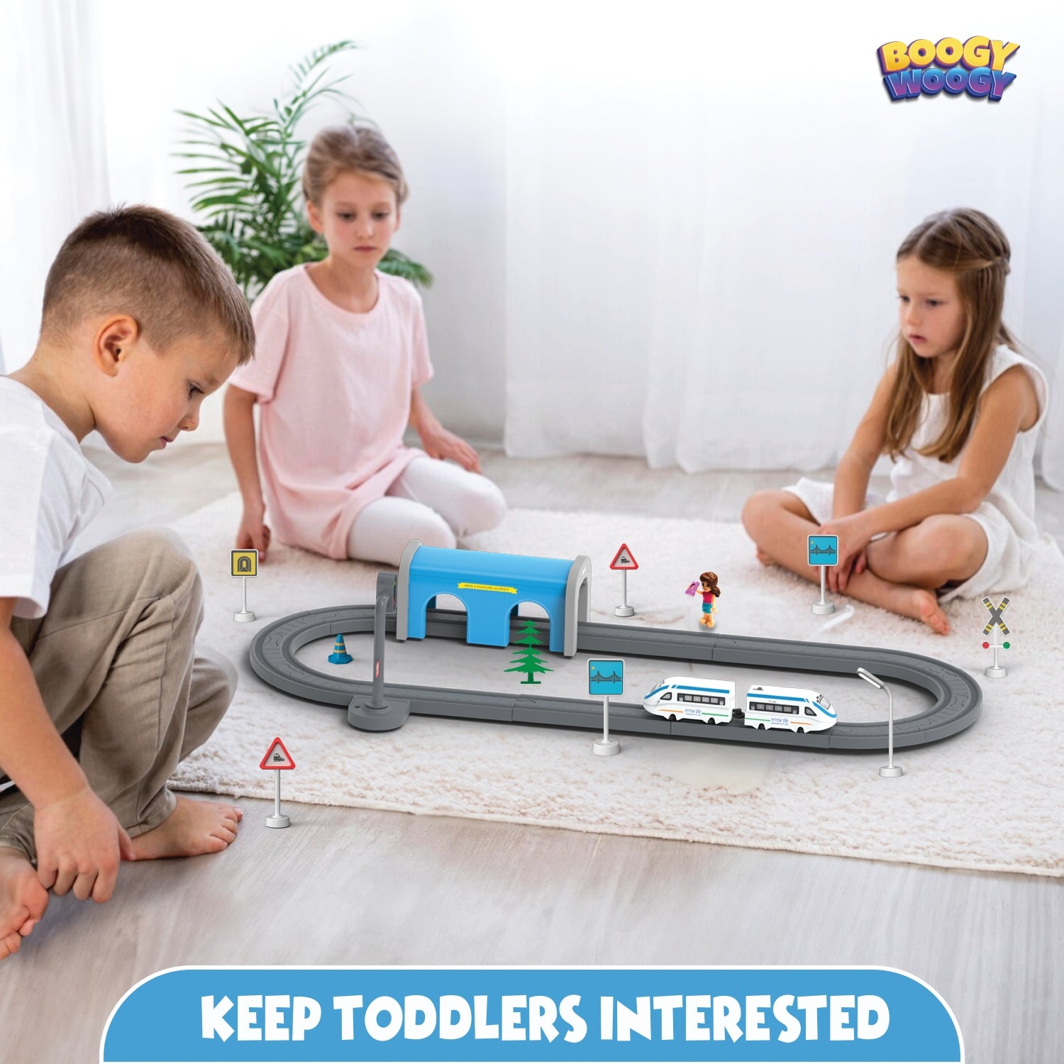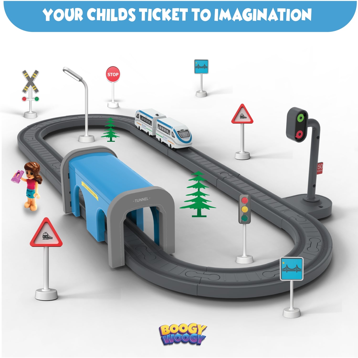 Create a bustling city with traffic cones, a diligent traffic police, tunnels, and beautifully designed stickers that add character to the landscape. Safety lessons come to life with road signs and lights, while versatile track connectors offer endless layout possibilities. The BOOGYWOOGY Trainset is not just a toy; it's an educational adventure, fostering cognitive development and fine motor skills.