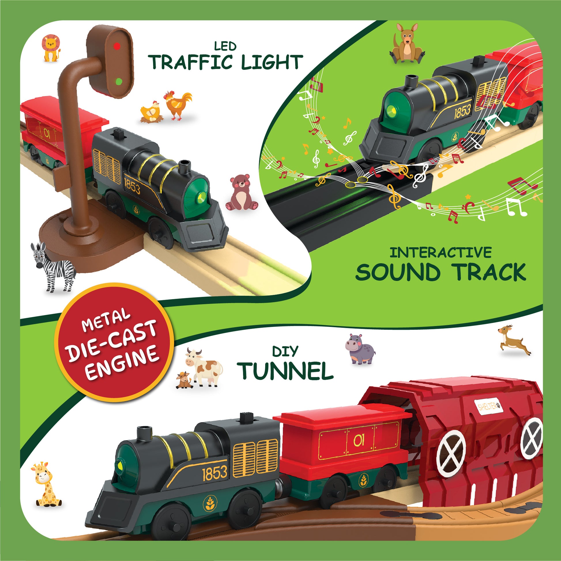 🔧 DIY Magnetic Tracks – Easy to snap together and rearrange, giving kids the freedom to design their own jungle railway. 🧲✨