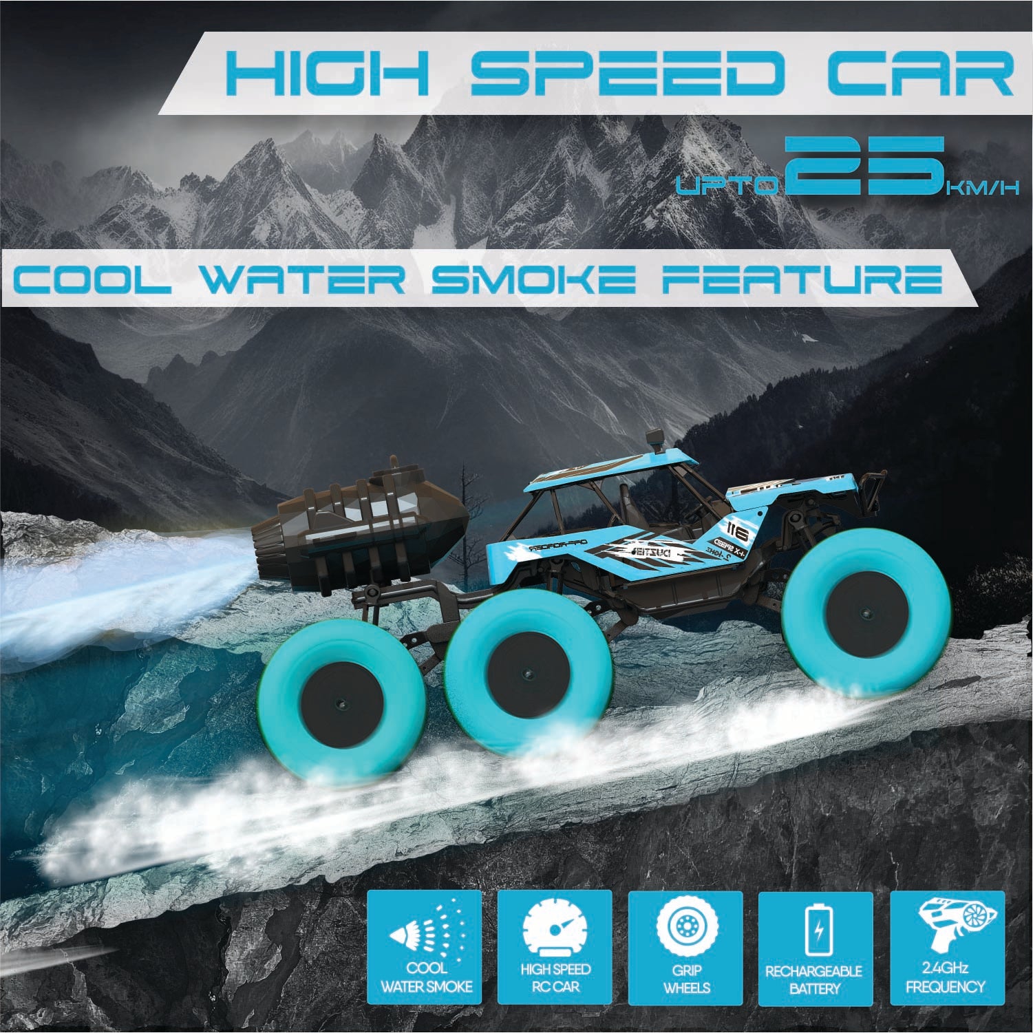 Experience thrilling off-road adventures with the DUZTER RC Toy Car. Equipped with 2.4 GHz technology and a 3.7 V rechargeable battery, this car is designed for kids. Its grip wheels provide stability on rough terrain with smokes, while the powerful suspensions ensure durability. Enjoy high-speed fun with the included rechargeable battery.