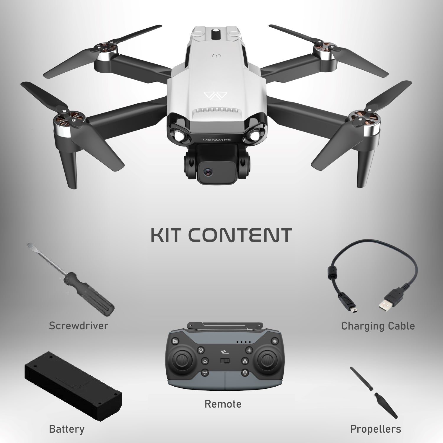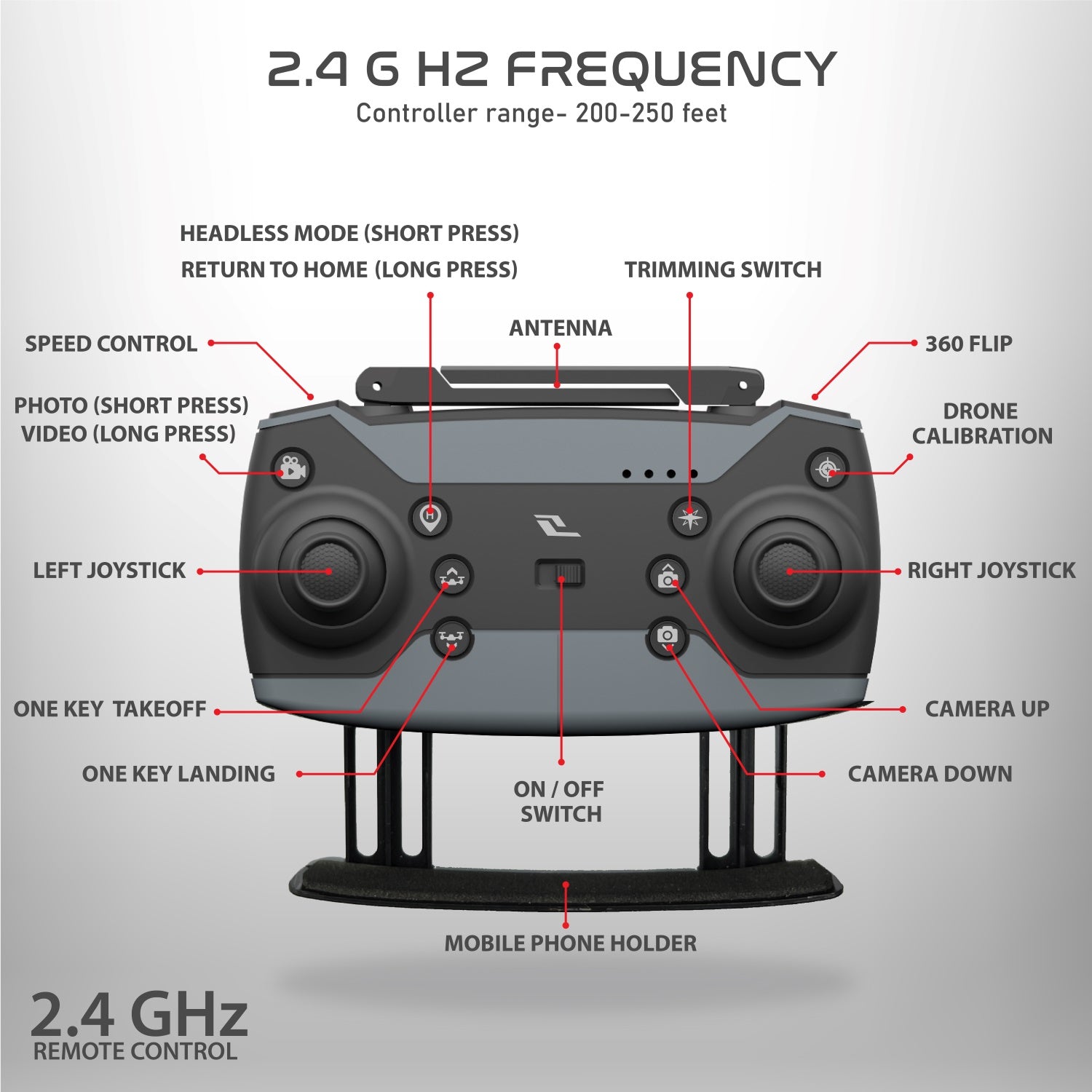 | Kit Content | Drone, Remote, Drone Battery, USB Charger, One Extra pair of Propellers, Screw Driver |