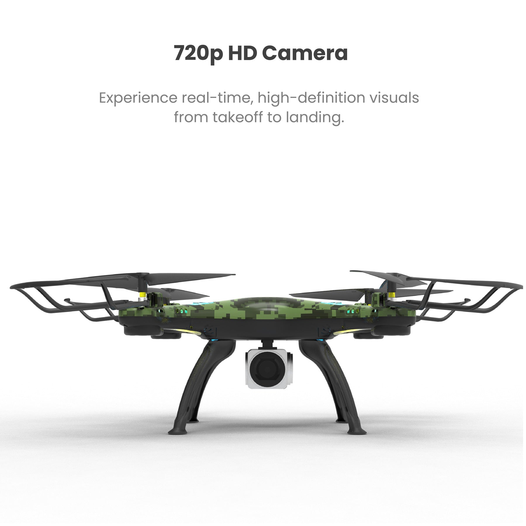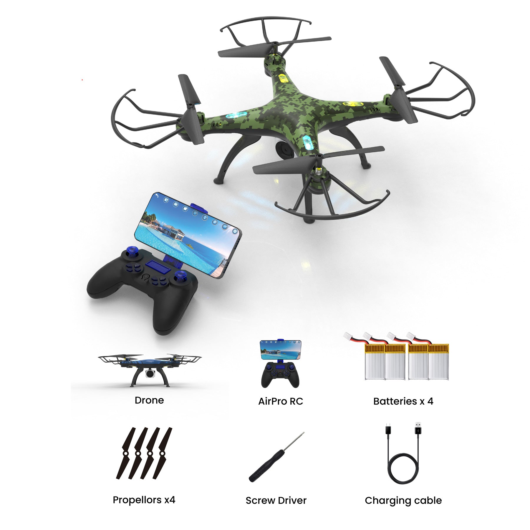Skyjet Pro RC Drone with 720p HD Camera, 4 Batteries | 360° Flip, LED Lights, One-Key Return | Best Mini Flying Toy for Kids & Adults | Remote Control DIY Drone for Beginners (Army Green))