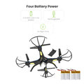 Powered by four included rechargeable batteries, you can enjoy extended flight time compared to standard drones. The 2.4GHz remote control offers a strong, stable signal with intuitive controls tailored for beginners and kids — including one-key takeoff/landing, one-key return, headless mode, and built-in trimming buttons for smooth, balanced flight.