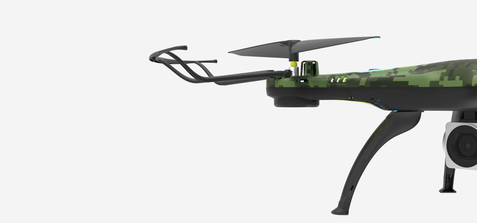 Powerful motors deliver smooth, fast flight while the built-in propeller guards protect the drone during bumps and indoor flying.